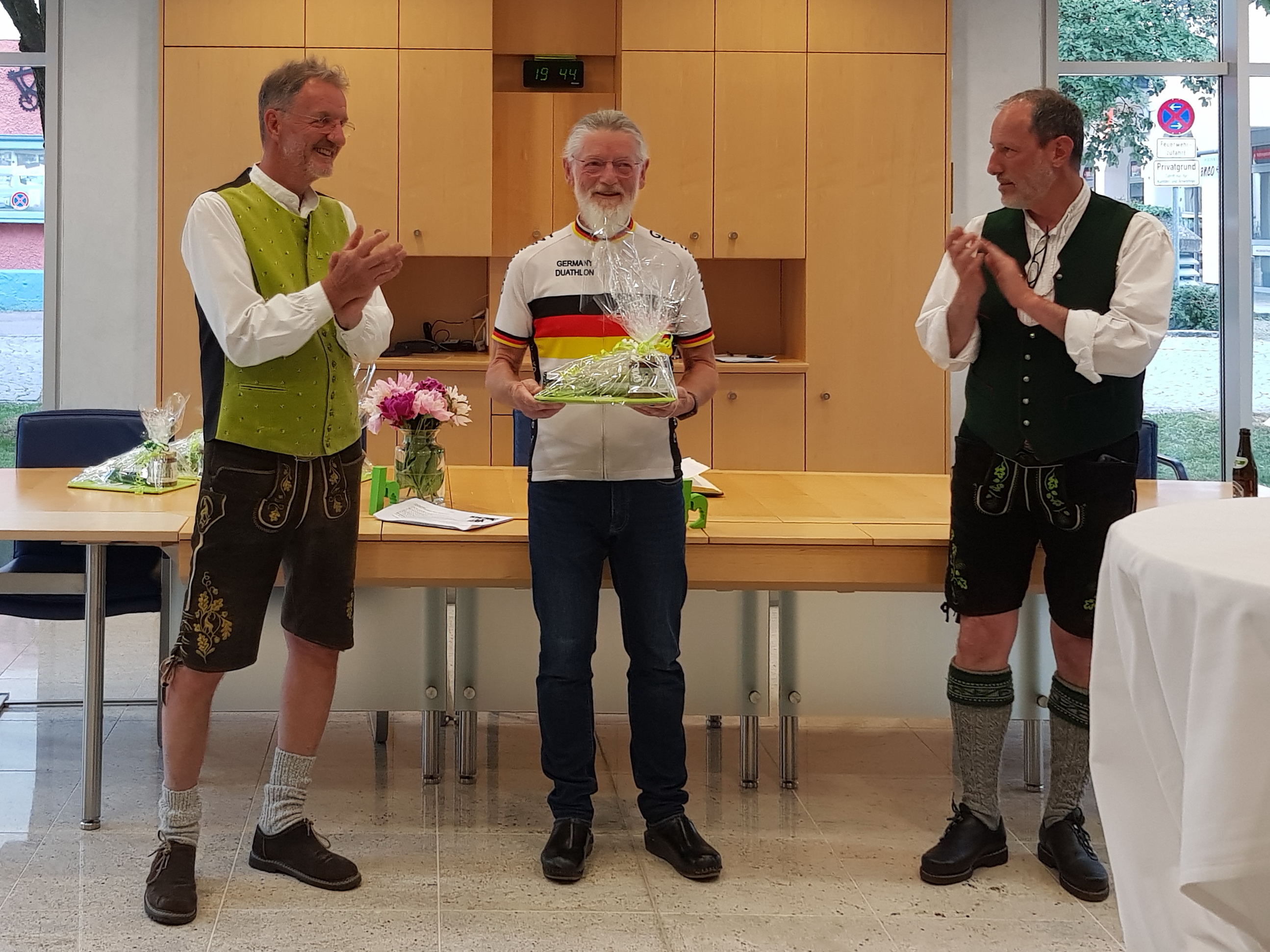 Deutlich näher am nächsten Wettkampf war Konrad Puk. Der Triathlon-Klassiker in Roth steht an und immerhin hat der 75-Jährige Platz eins seiner Altersklasse zu verteidigen. Wedekind stellte ihn als besonderes Vorbild heraus – sportlich wie auch wegen seines Engagements in verschiedenen Ehrenämtern. Dass er mit über 50 Jahren einfach einmal ausprobiert habe und es dann Schritt für Schritt mit Neugier und von manchem glücklichen Zufall animiert zu großen sportlichen Meriten gebracht habe, verdiene höchsten Respekt. „Für mich war das auch immer unvorstellbar, aber wer nicht anfängt hat schon verloren“ ermunterte Puk auch andere, sich von Herausforderungen nicht einschüchtern zu lassen. Dass bei den Stockschützen auch mal ein bayerischer Urschrei für Motivation sorge, habe er erst vergangene Woche in Schaftlach erlebt, hob Schmid die gute Stimmung bei den erfolgsverwöhnten Hartpenningern hervor. Er empfahl, auch mal bei Sportarten zuzuschauen, die man nicht selbst betreibe. Sport in Holzkirchen sei vielfältig. Es sei ihm ein Bedürfnis, dass sich die Sportler untereinander kennenlernten.