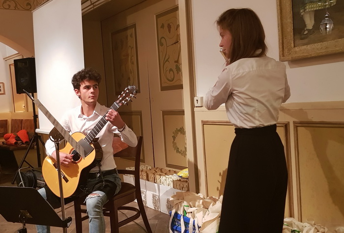 Flo Stumpferl führte durch das offizielle Programm des Abends, dessen Highlights die Musikstücke waren, die Benjamin Wittmann an der Gitarre und seine Schwester Lea vortrugen. Bei dieser Musik, die aber sehr lebendig und rhythmisch vorgetragen wurde, war es mucksmäuserlstill im Saal, bemerkenswert bei nahezu 40 Kindern.