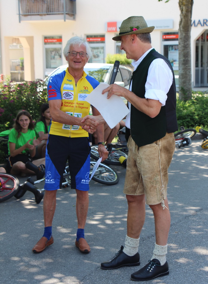Bei der Siegerehrung am 30.06.19 konnte Georg Smolka aus der Hand des Bürgermeisters Olaf von Löwis Urkunden für die Sonderkategorie, ein Trikot und eine "Wundertüte" für die Teamteilnehmer entgegen nehmen.