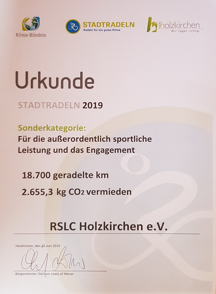 Der RSLC bildete eines der 29 Teams in Holzkirchen. Außer RSLC-Mitgliedern schlossen sich noch andere begeisterte Radler dem Team RSLC an. Insgesamt waren es am Ende 44 Teilnehmer des Teams RSLC, weit vor dem Zweitplatzierten Team Schlauchä von Ludwig Würmseer mit 27 Teilnehmern. Insgesamt 18.700 Kilometer, d.h. 28% der Gesamtsumme von Holzkirchen, standen nach 3 Wochen auf dem Konto, ebenfalls weit vor dem Schlauchä-Team mit 11.560 km und Bosch Engineering GmbH mit 7.348 km.