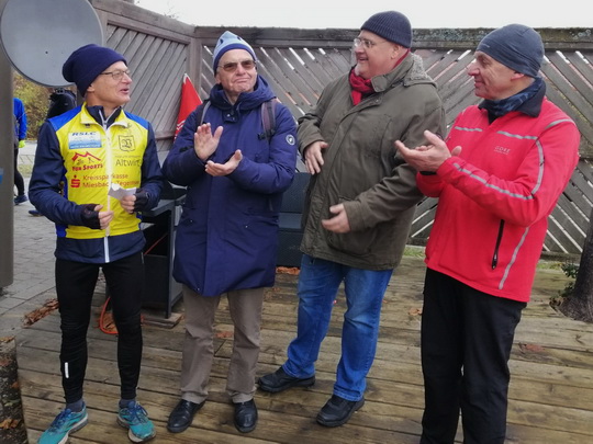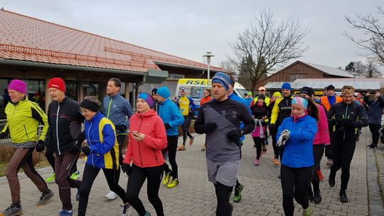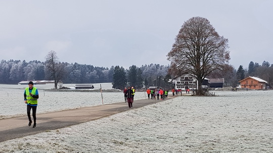 Die Strecke führte dieses Jahr wieder über die Marktlaufstrecke nach Buch. Vielen genügten die vier Kilometer dorthin. Einige machten noch einen zusätzlichen Bogen von zwei Kilometern durch das Barbaraholz und waren dann wirklich warmgelaufen. Am Hof von Josef Zellermeyer wurde warmer Tee ausgeschenkt. Der wurde gerne genommen, denn für die meisten war es gefühlt wirklich zapfig kalt.