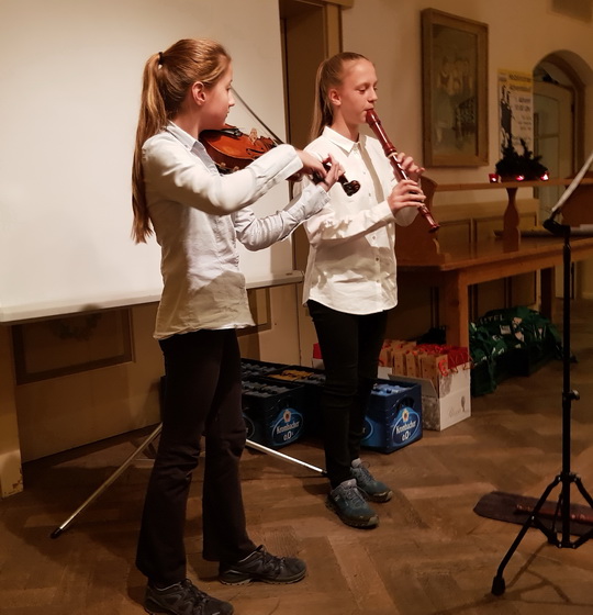 Die Bundessiegerinnen bei "Jugend musiziert" Noemi Kempf und Franziska Kofler umrahmten die Feier mit Musik u.a. mit Werken von Bach, Bizet und der Popgruppe Abba.