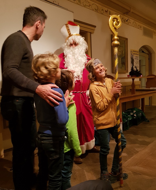 Der Nikolaus rief die Kinder mit ihren Trainern heraus. Jede und jeder der Kinder und Jugendlichen bekam einen Geschenkebeutel, den Michael Stienen von Naturland spendiert hatte.