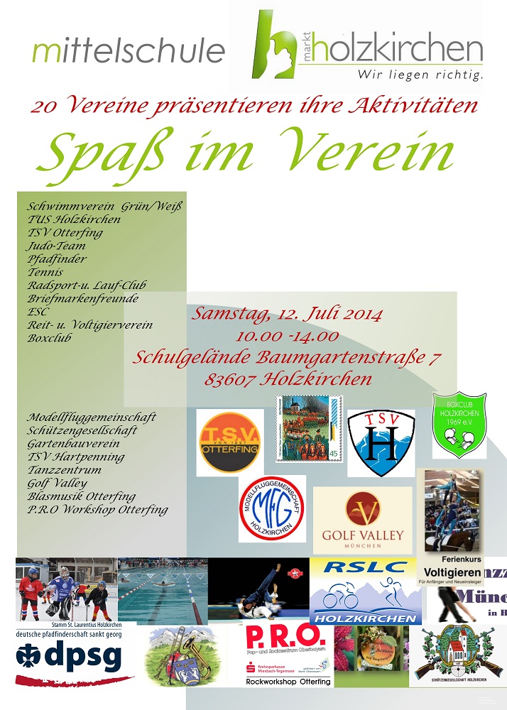 Die Mittelschule Holzkirchen gab an ihrem Sommerfest am Samstag, 12. Juli 2014, 20 Vereinen aus Holzkirchen die Gelegenheit ihre Aktivitäten zu präsentieren. Der RSLC Holzkirchen war ebenfalls eingeladen.