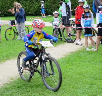 Für den sportlichen Höhepunkt aus Sicht des RSLC sorgte Gabriel Köglsperger in der Klasse U11. In dieser Klasse galt es einige, zum Teil sehr steile, Wiesenauffahrten zu bezwingen. Eine konnte sogar von nur 4 Fahrern, des mit 23 Kindern größten Fahrerfeldes, ohne Absteigen bewältigt werden. Einer davon war Gabriel, der sich von Anfang an in der Spitzengruppe aufhielt, und letztendlich als 3ter freudestrahlend die Ziellinie überquerte. Herzlichen Glückwunsch!