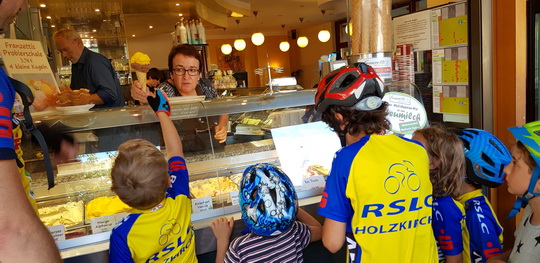 Nach dem letzten Training vor den Sommerferien stürmten 60 Kinder und Jugendliche des RSLC den Franzetti, um sich ein reichlich verdientes Eis abzuholen. Pech hatten diejenigen, die gerade in dieser Woche in einem Schullandheim weilten.