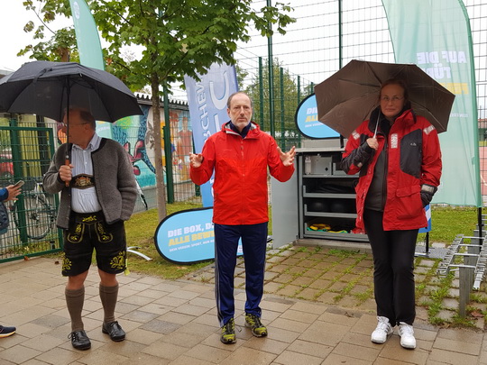 Nach der Eröffnung machte Cora Stumpferl vom RSLC eine kurze Einführung in die Nutzung des "Sportkisterls" gegeben, gefolgt von einer Vorführung von Übungen mit den verfügbaren Geräten.