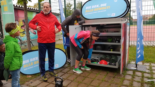 Die Sportboxen des DOSB sind öffentliche, kostenfreie Verleihangebote für Trainingsausrüstung, die es den Menschen ermöglichen, im Freien Sport zu treiben.