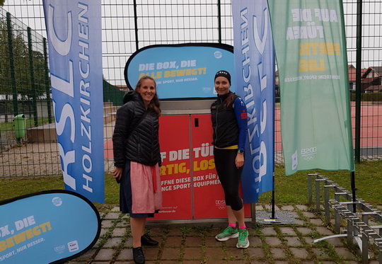 Eva-Maria Schmitz von der Standortförderung hat sich für den Markt Holzkirchen zusammen mit dem RSLC Holzkirchen erfolgreich um eine der 150 Sportboxen beworben und eine gewonnen.