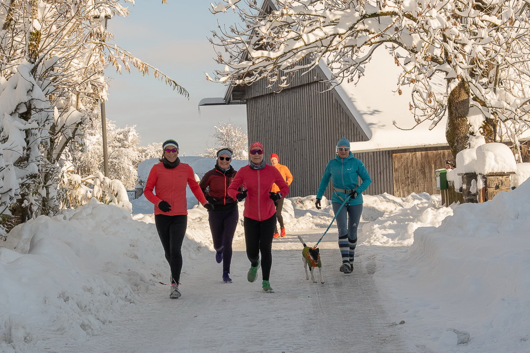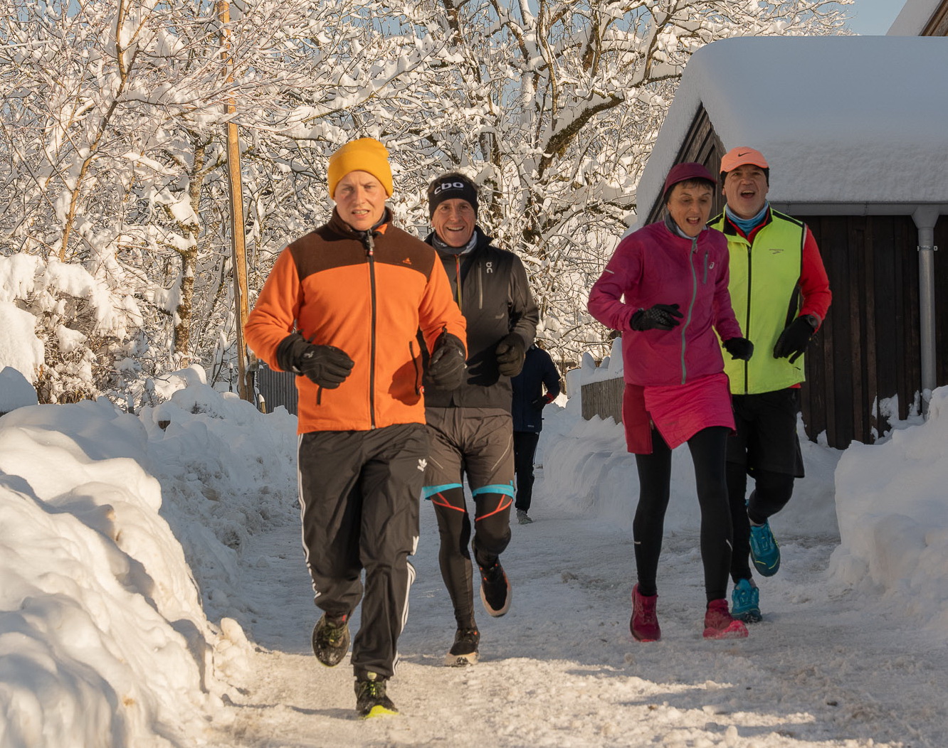 Dieses Jahr scheuten einige die voraus gesagten Minustemperaturen, so dass etwas weniger Lauffreunde am Start waren. Aber auch Bürgermeister Christoph Schmid schnürte die Laufschuhe und verstärkte das Läuferfeld. Bei sagenhaftem Sonnenschein ging es einmal um den Roggersdorfer Dorfweiher und wieder zurück zum BaTuSa.