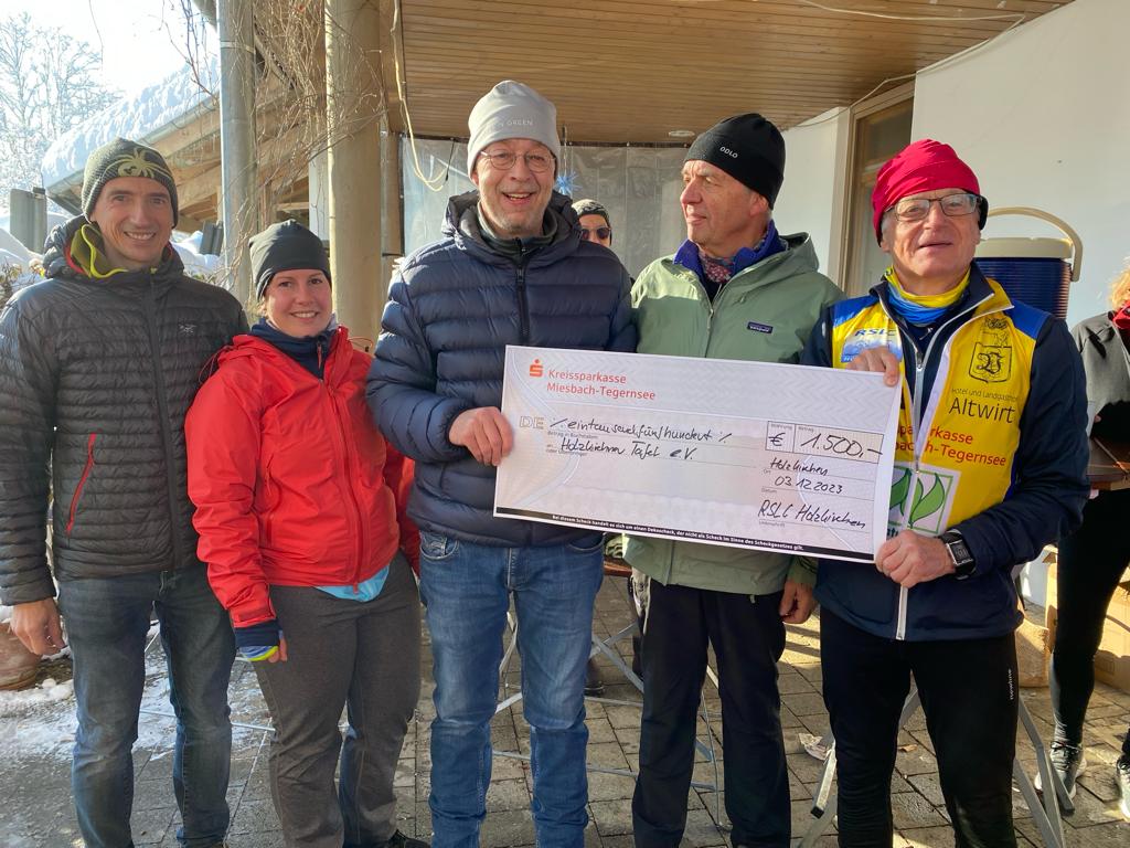 Die Läufer zeigten sich sehr freigebig, um anderen Menschen zu helfen. Am Ende konnten 1.100 Euro gezählt werden. Diesen Betrag rundete die Kreissparkasse Miesbach-Tegernsee, vertreten durch Fritz Finkenzeller, sehr großzügig auf 1.500 Euro auf, die an den Vorsitzenden der Holzkirchner Tafel Gerhard Berberich übergeben werden konnten.
