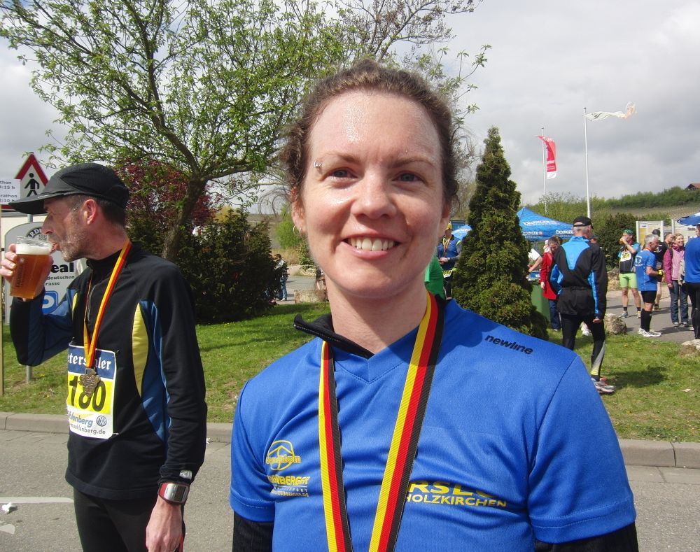 An diesem Tag war einfach alles optimal beim Laufen. Maren hatte auf der anspruchsvollen Strecke mit immerhin 240 Höhenmetern bis Kilometer 10 zwar Schmerzen, aber danach lief es rund und reichte mit einer Zeit von 1:41:45 für einen hervorragenden 4. Platz in der Altersklasse W35. Das bedeutete den super 18. Gesamtrang bei den Frauen unter 631 Teilnehmerinnen.
