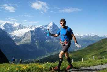 Unser RSLC Ultraläufer Rainer Leyendecker war mit seiner Frau Marlyn zum Aktiv-Camping-Urlaub im Berner Oberland. Aber nicht urlaubsfreundlich gestaltete sich sein Lauftag bei der Premiere dieses ausgebuchten Laufes über 101 km mit 6.700 Höhenmetern. 450 Ultras aus 26 Nationen weltweit waren gemeldet, nur 257 kamen in die Zielwertung. Gestartet am 20. Juli vor der Morgendämmerung in Grindelwald um 5 Uhr, verlief die Strecke meist über Trails zur Großen Scheidegg mit grandiosem Sonnenaufgang mit Blick auf Eiger - Mönch - Jungfrau und dann mit vielen steilen Auf- und Abstiegen über First aufs Faulhorn (2.680 m). Rainer lag nach 6 Std. noch gut im Zeitplan, aber dann begannen lange, technisch schwierige Passagen über Steinplatten und durch steile Schneefelder zur Schynige-Platte Der Abstieg ins Tal zur kurzen Halbzeit-Pause in Burglauenen bei km 52,5 auf nur 900 m erfolgte über teils gesicherte Steige.