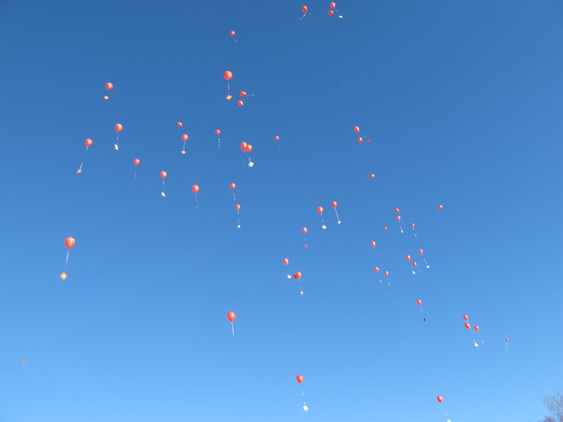 Nach dem Lauf konnten alle Läufer eine Karte mit den Wünschen zum neuen Jahr beschreiben und an einen Luftballon binden. Bei einem gemeinsamen Start der rosa Luftballone in den strahlend blauen Himmel konnte jeder hoffen, daß die Wünsche in Erfüllung gehen.