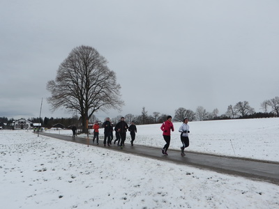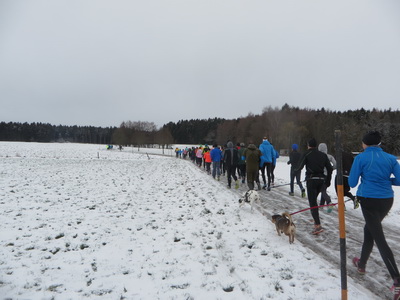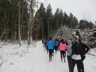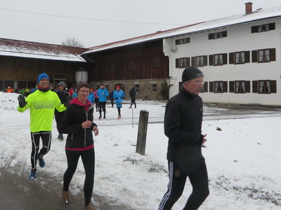 Heuer hatte es am Vortag etwas geschneit und für den 1. Adventsonntag am 29.11.2015 war Regen vorausgesagt. Aber das Wetter hielt wunderbar und so starteten über 80 Läuferinnen und Läufer begleitet durch ein paar Radler vom Batusa in Holzkirchen in Richtung Buch. Die meisten begnügten sich mit einem lockeren Lauf über insgesamt 7 Kilometer. Die Konditionsstärkeren konnten auf zwei längeren Runden mehr Kilometer sammeln.