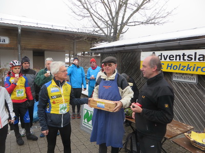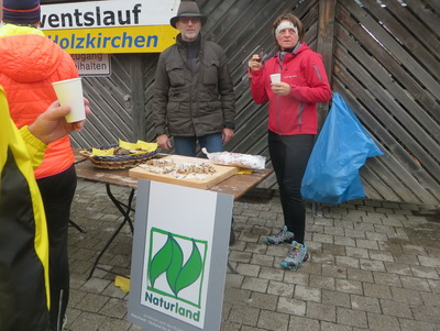 Dort konnten sich die Läufer mit heißem alkoholfreiem Punsch, Stollen und Lebkuchen stärken, die von Michael Stienen für Naturland gespendet und aufgebaut worden waren.