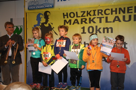 Start 10 Kilometer Marktlauf Siegerehrung der Zwergerl