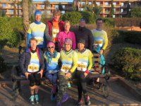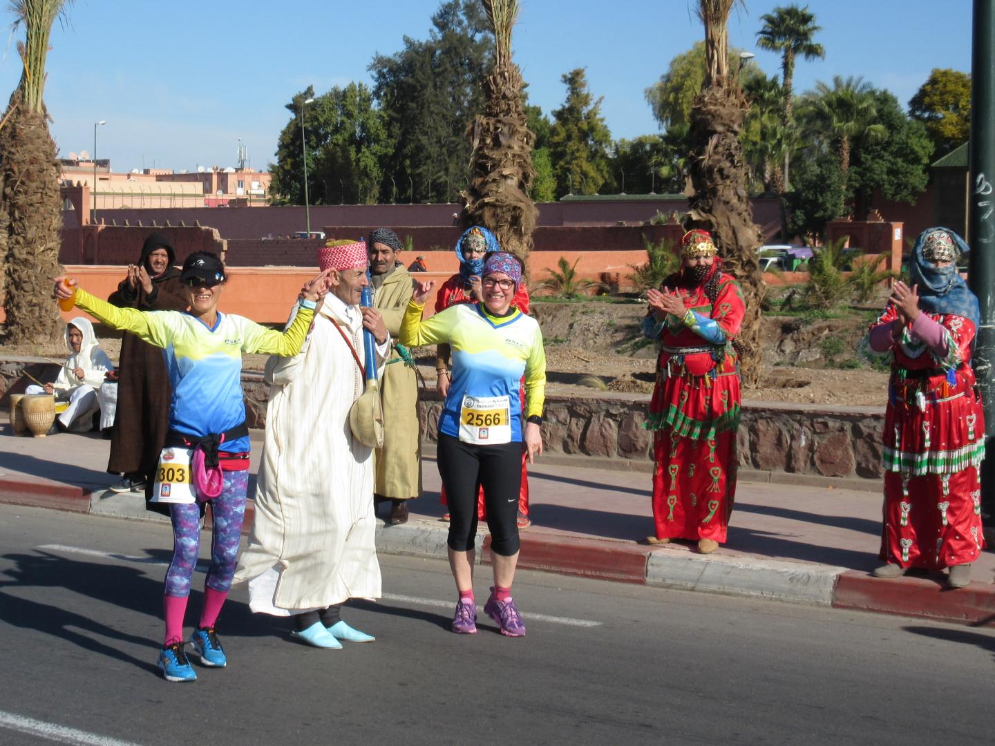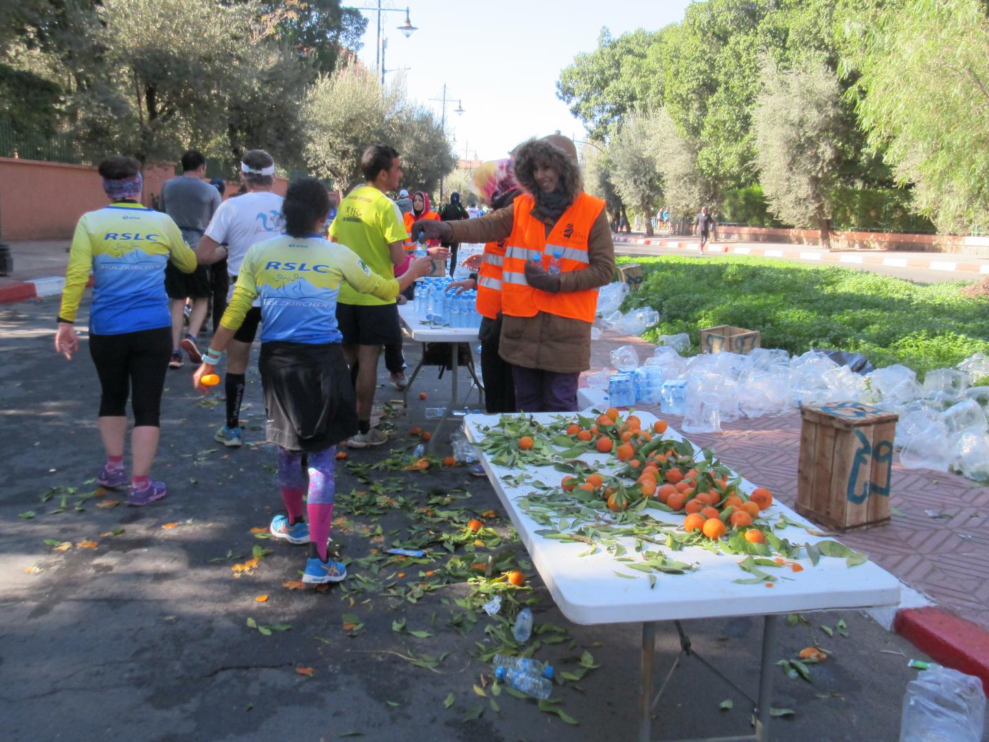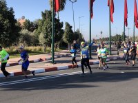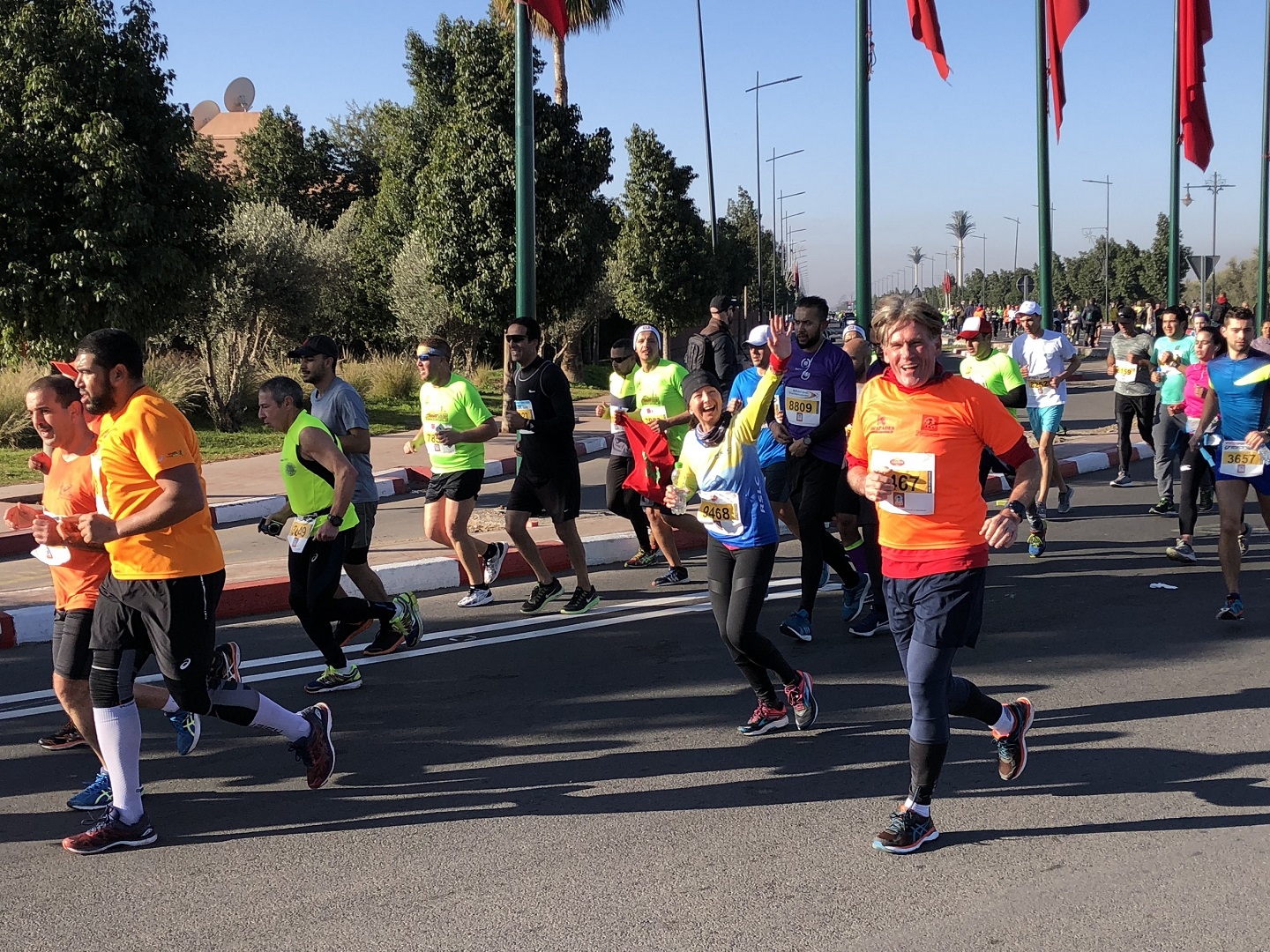 Ein sonniger Tag kündigt sich an, jedoch ist es noch kalt und der Raureif glitzert auf dem Rasen. Gut, dass unter dem langen Shirt nach Platz für zwei weitere Lagen waren. Endlich fällt um 8:30 Uhr der Startschuss und es wird beim Laufen wärmer. Alle RSLC-Läuferinnen und Läufer haben sich für die Halbmarathon-Distanz angemeldet, obwohl die Marathon-Strecke auch möglich gewesen wäre. Es war die richtige Entscheidung, denn im Holzkirchner-Winter bei Dunkelheit und Schnee war das Training nicht immer einfach. Und wir tauchten ein in die tolle Stimmung der pulsierenden Stadt. Die Zuschauer jubeln uns zu, in der Ferne ist das schneebedeckte Atlas-Gebirge zu sehen und wir laufen auf palmengesäumten Alleen unserem Ziel entgegen. An den Verpflegungsstationen verströmen Mandarinen einen intensiven Duft, wenn die Teilnehmer über deren leeren Schalen laufen.