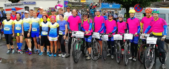 Die RSLC-Radler waren auch in diesem Jahr wieder als Führungs- und Schlussradler mit von der Party und beim letzten Anstieg der 10 bzw. 5km Strecke nach Gut Kaltenbrunn gab es ein Kopf- an-Kopfrennen zwischen Läufer und Radler, bevor es dann zum Ziel wieder bergab ging und die Radler ihre Stärke ausspielen konnten.