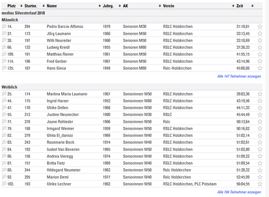 Teilnehmer und Ergebnisse RSLC Holzkirchen: