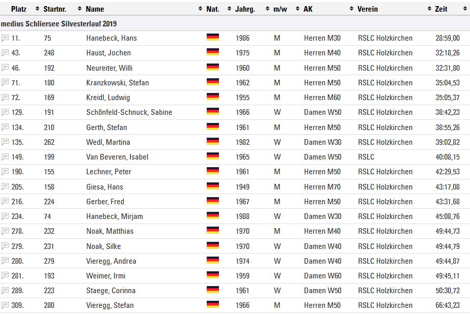 Gleich 19 Sportler des RSLC Holzkirchen nahmen am Schliersee Silvesterlauf 2019 teil.