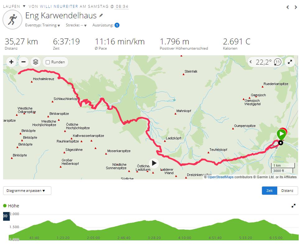 Die "schnelle Truppe" war mit insgesamt 35km bei 1800Hm von der Eng bis zum Karwendelhaus und zurück unterwegs.