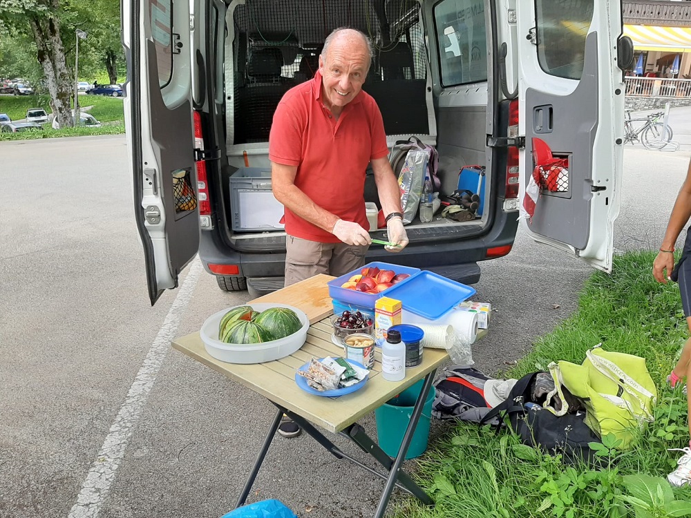 Als alle mehr oder weniger erschöpft wieder in der Eng angekommen waren, wurden wir von Wilfried bereits mit einem liebevoll hergerichteten Läufer-Buffet mit Getränken, leckerem Obst, Gemüse und Nüssen empfangen. Vielen Dank dafür!