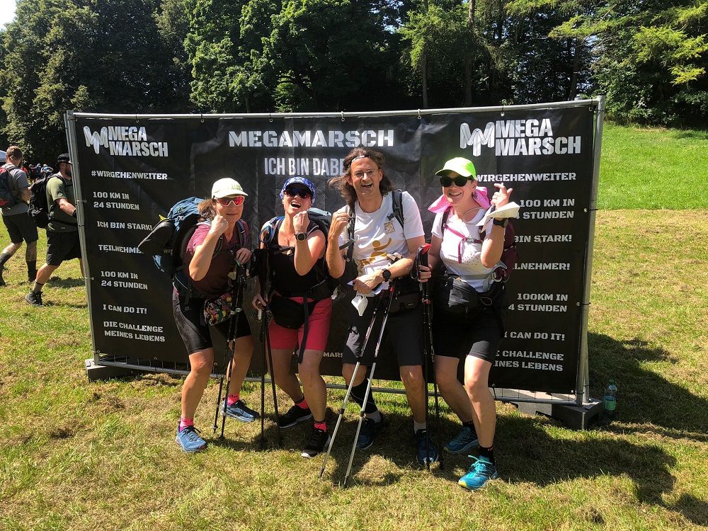 Irgendwann im Winter (bei einem unserer Corona-konformen Zweier-Laufeinheiten) erzählte mir Cora von ihrer Idee am Megamarsch teilzunehmen. Die Eckdaten, die sie aufzählte waren: Wir gehen von München nach Mittenwald, das sind 100 Kilometer in 24 Stunden. Dass 100 Kilometer weit sind, war mir klar. Worauf ich mich da wirklich eingelassen hatte, war mir zu dem Zeitpunkt noch nicht klar... Cora und ich konnten Silke und Matthias auch noch von dieser Idee begeistern und so waren wir zu viert. Wir haben vorab viele Trainingsmärsche absolviert. Angefangen mit einer Distanz von 21 Kilometern, bis zum letzten Marsch mit 67 Kilometern. Wir sammelten Erfahrungen, optimierten unsere Ausrüstungen und bekamen so langsam ein Gefühl dafür, dass wir uns auf ein wahrlich großes Projekt eingelassen haben.