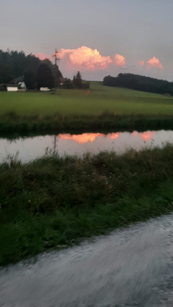 Nach einer kurzen Pause ging es weiter zur zweiten Verpflegungsstelle bei Kilometer 40 in Eurasburg/Beuerberg. Unmerklich wurde es wenigstens etwas kühler, denn die Sonne ging so langsam unter. Auch an der zweiten Verpflegungsstelle angekommen wieder das gleiche Prozedere. Trinkblasen auffüllen, trinken, essen und etwas Pause machen. Leider musste Silke an diesem Punkt aufgrund von starken Schmerzen in Füßen und Rücken den Marsch abbrechen. Die Entscheidung fiel ihr gar nicht leicht und auch wir restlichen Marschierer waren sehr traurig darüber. Aber letztendlich muss man bei so einem Projekt auf jeden Fall auf seinen Körper hören und dann im Zweifelsfall auch die Reißleine ziehen...
