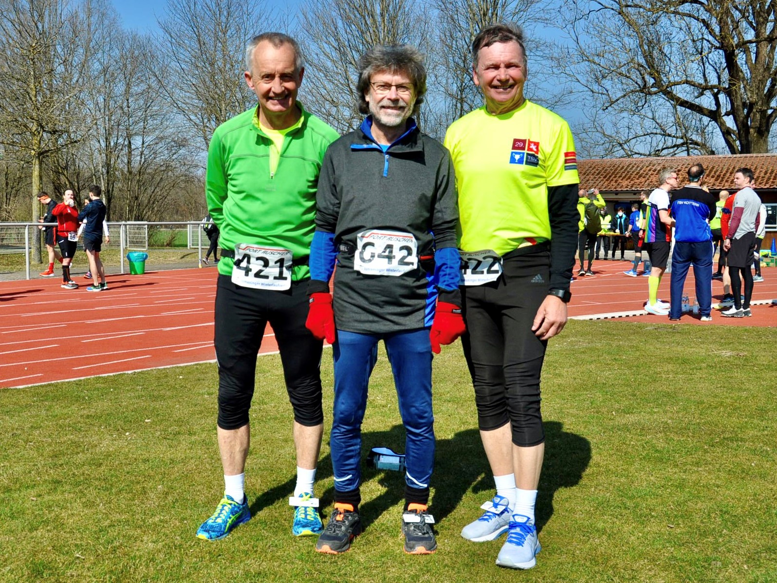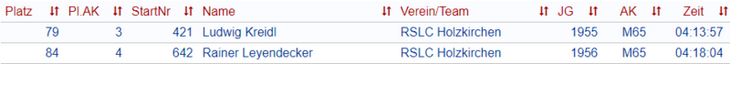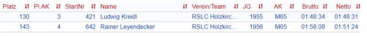 Hier folgen die Resultate der beiden einzigen Starter für unseren RSLC über die 13 km und die 17 km. Dabei finishte Rainer jeweils mit Nettozeiten knapp hinter Ludwig. Aus den Bruttozeiten geht hervor, dass Ludwig immer in der 1. flotten Startgruppe ins Rennen ging und Rainer etwa 6-7 Minuten später mit der langsameren Gruppe loslief. Am 20. März war auch Wilfried als Zuschauer mit dabei, dem wir diese Fotos von uns verdanken.