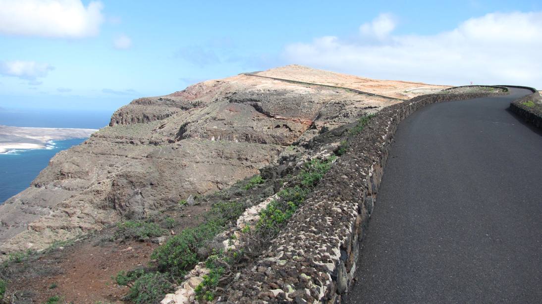 Die Fotos zeigen links die Auffahrt zum Tabayesco und rechts den Mirador del Rio.