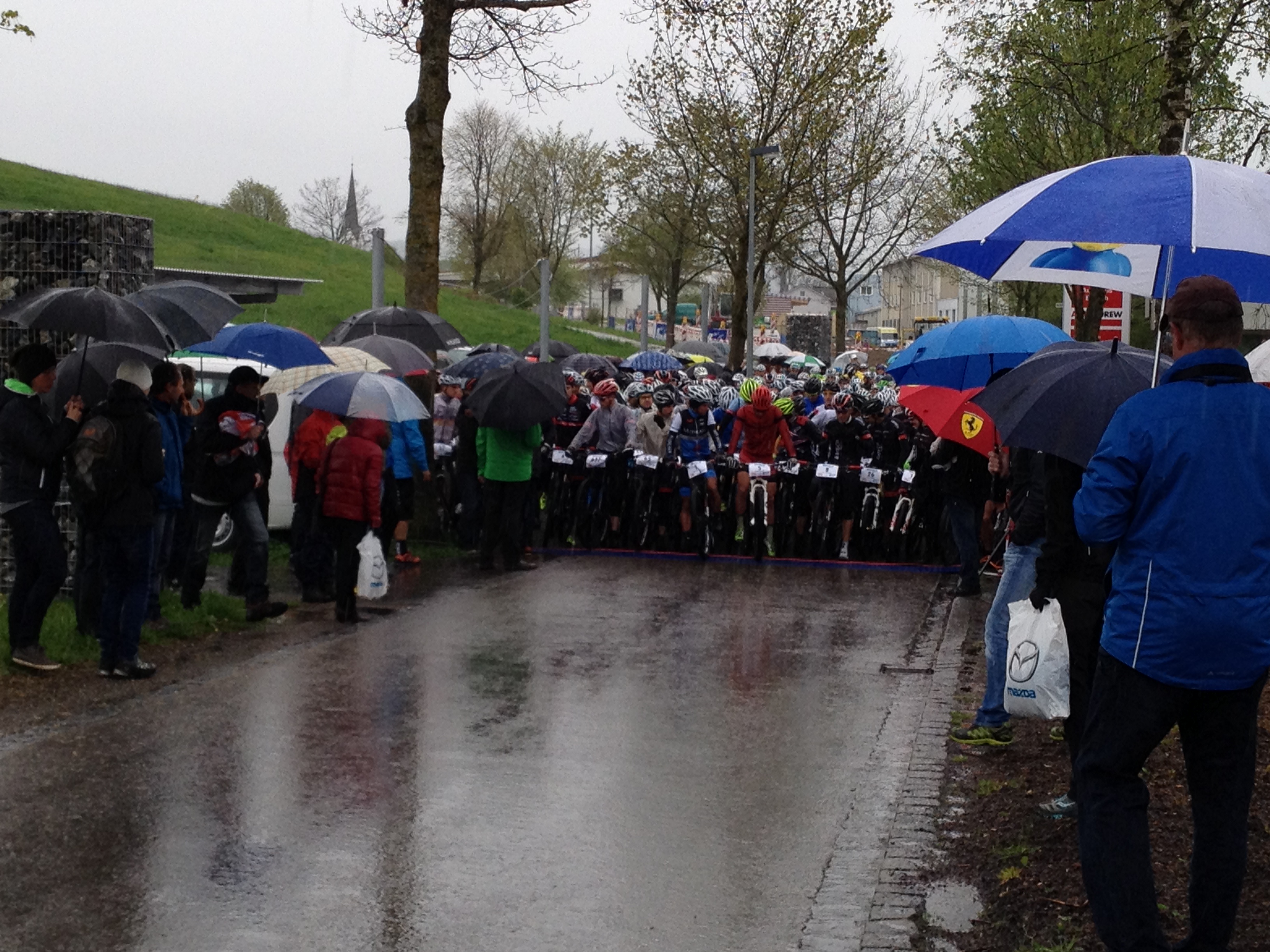 Für Tobias und Daniel wurde das Rennen dann auch zum totalen Regenrennen. Bei nur 9 Grad und strömendem Regen war schon die Startaufstellung kein Spass. So wurde die Strecke zum Teil zur Rutschbahn. Doch die beiden RSLC-Fahrer kamen sicher ins Ziel. Beiden reichte die Kurzstrecke über eine Runde mit 40 Kilometern und 750 Höhenmetern. Tobias sicherte sich den 54. Gesamtplatz (41. Platz in der Klasse Elite Herren). Daniel kam in seinem Einstiegsrennen nach seiner schlimmen Knieverletzung auf Gesamtplatz 152 (98. Klasse Elite Herren) von 361 gewerteten Fahrern. Fast 200 gemeldete Fahrer waren nicht ins Ziel gekommen oder hatten gleich auf den Start verzichtet. Angesichts der üblen Witterungsumstände haben sich die beiden gut durchgekämpft und so früh in der Saison zwei sehr gute Platzierungen erreicht.
