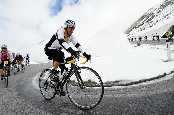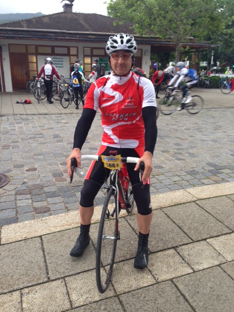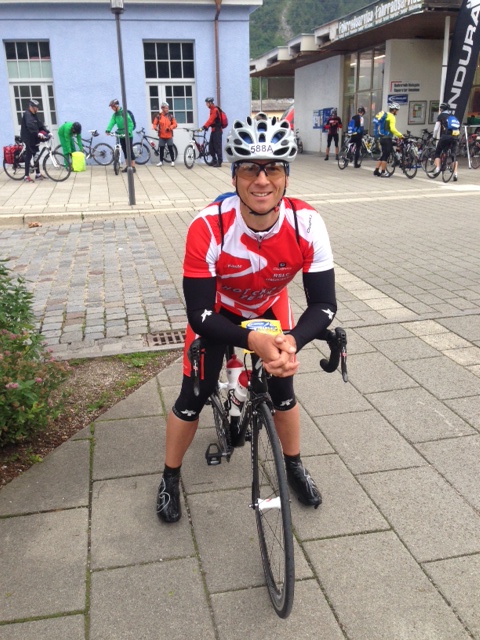 Sepp Gschwendner: "Heute mal den ganzen Tag Sonne bei der Schwalbe Tour Transalp. Nach der gestrigen Königs-Etappe, wo es schon am Start wieder geregnet hatte und mit 12 Grad nicht gerade zum Rennradfahren einlud, war es heute ein Genuss bei Sonnenschein Rennrad zu fahren. Nach der gestrigen Königsetappe hatten wir schwere Beine, die uns zu schaffen machten."6. Etappe - 04.07.2014