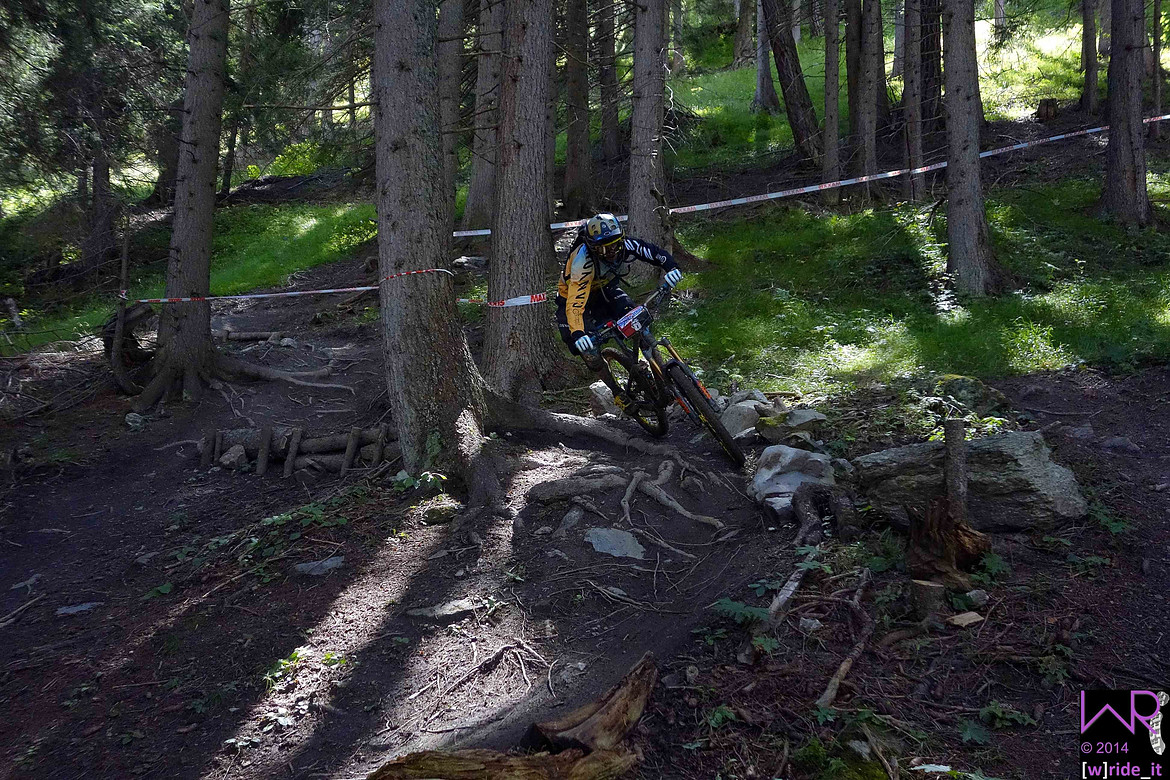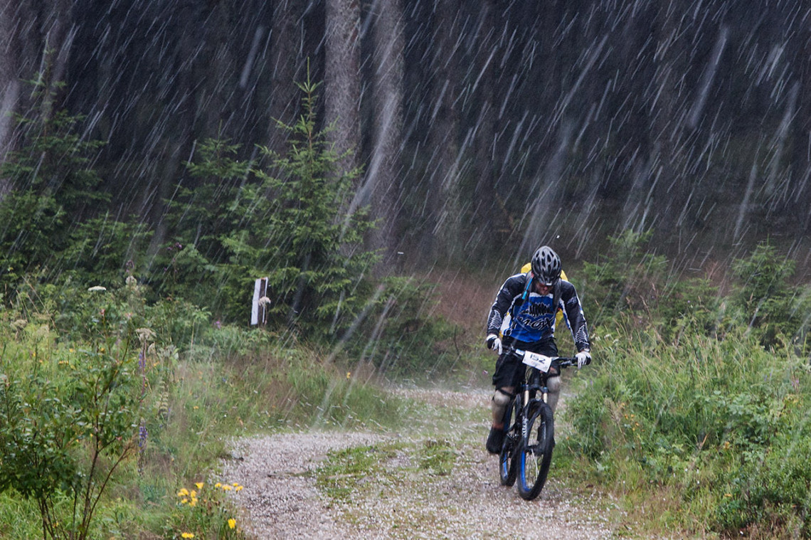 am Reschenpass, diesjähriger Austragungsort des 3-Länder-statt. Circa 290 Fahrer waren dabei auf fünf (Amateure) bzw. sechs (Pro Klasse) Stages unterwegs. Die große Runde hielt dabei gute 50 km mit circa 1500 hm Up- und 4000 hm Downhill parat. Entgegen dem letzten Jahr wurde die Hälfte der Stages für dieses Jahr neu angelegt, wodurch ein starker Tritt mit genügend Ausdauer vorausgesetzt und zermürbende Action garantiert waren.Das Wetter zeigte sich an diesem Wochenende wechselhaft. Hingen am Samstag anfangs noch tiefe Wolken mit etwas Nieselregen über der Hochebene, gab es in der Nacht von Samstag auf Sonntag noch Regen, sodass die Pro Klasse auf frisch nassen Trails unterwegs war. Im Laufe des Tages und mit einem sonnenverwöhnten Start der Amateurklasse gegen 11.30 Uhr änderte sich dies allmählich, sodass die Trails unter der Südtiroler Sonne immer besser abtrockneten. Das eine oder andere Schlammloch blieb allerdings trotzdem unberechenbar fies rutschig.
