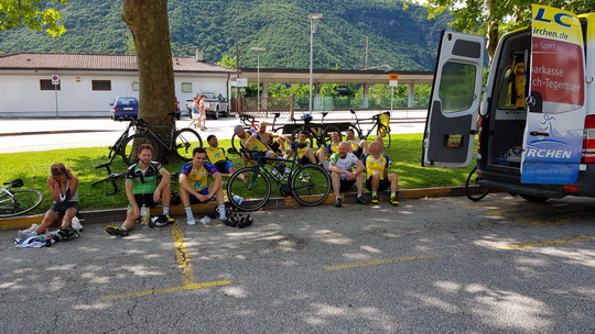 Die letzten Steigungen von Rovereto zum Passo S. Giovanni wurden auch noch geschafft und dann ging's steil hinunter zum Lago und zum Bier an der Bar Alla Sega.