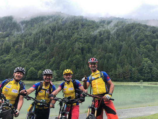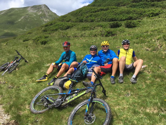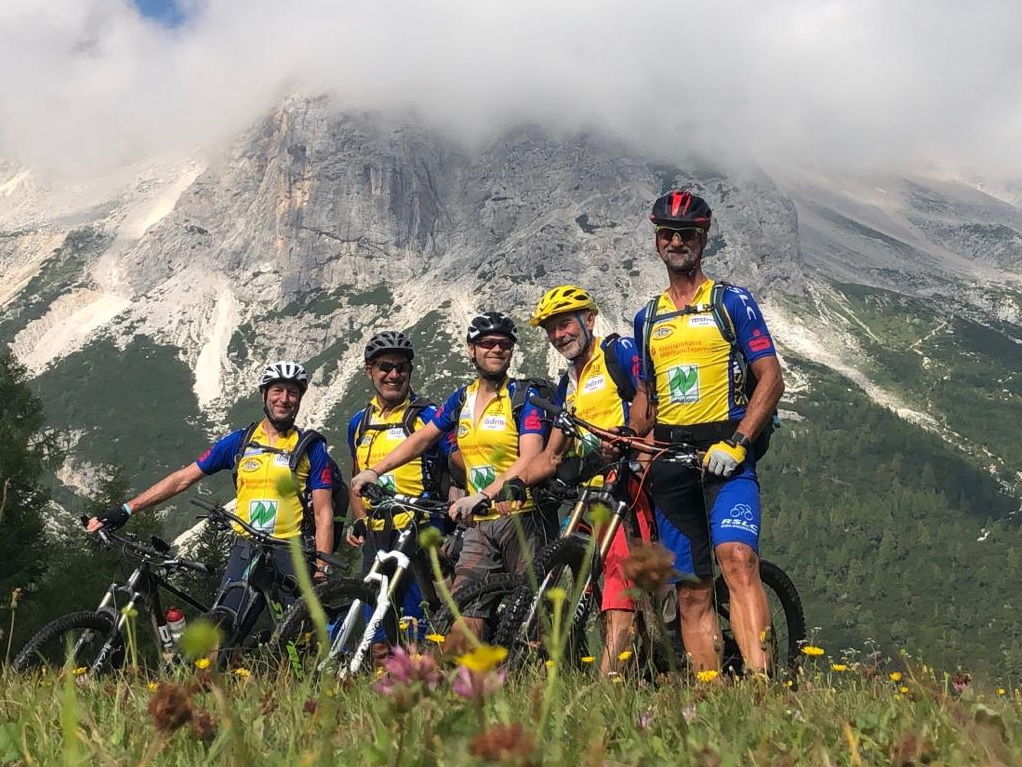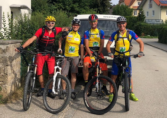 Die traditionelle TransalpX mit Manfred Breu, Thomas Meck, Helmut Schumacher, Gebhard Schwägerl und Thomas Winter.