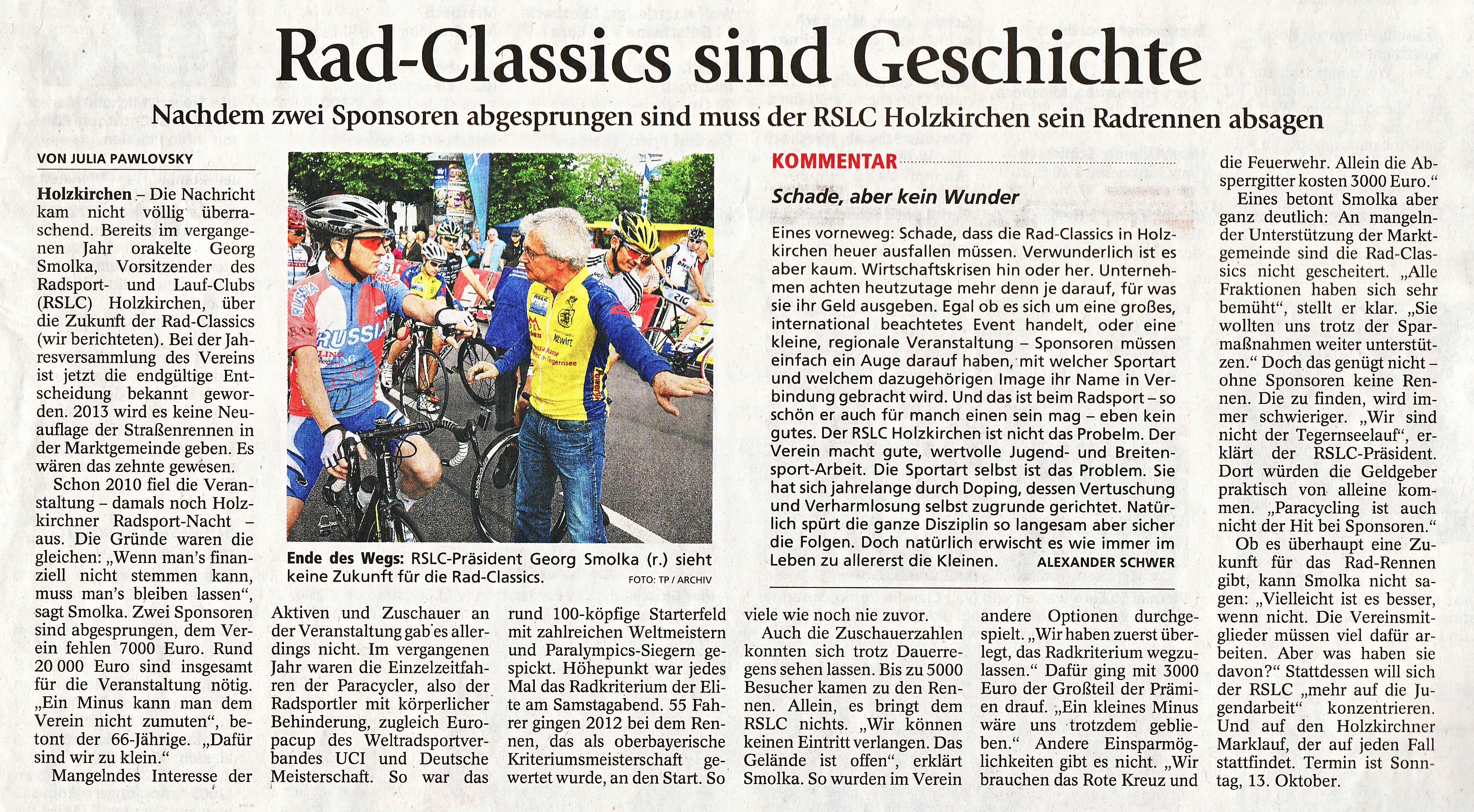 The 10. Holzkirchner RadClassics had to be cancelled.