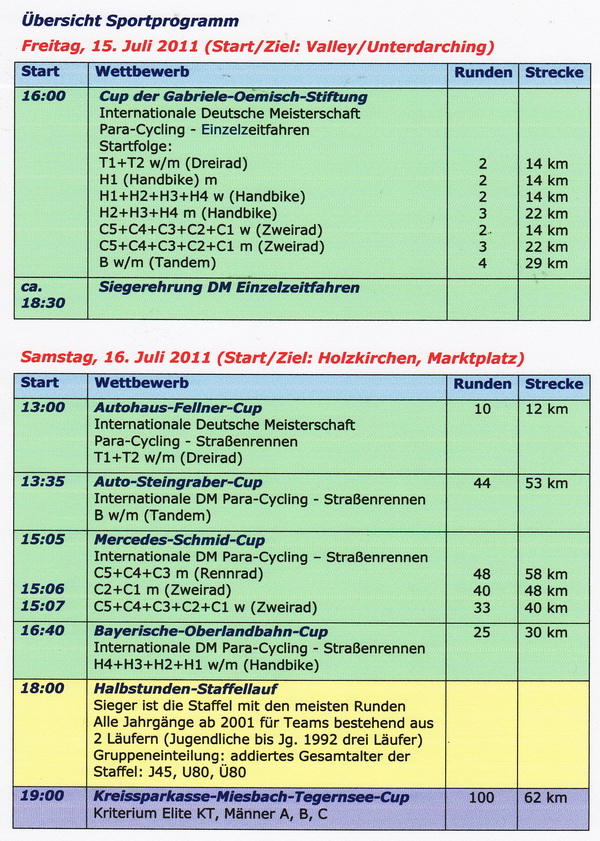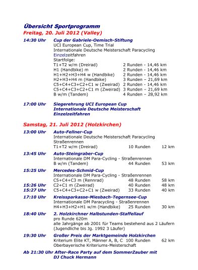 Internationale Deutsche Meisterschaft Paracycling Strasse, Einzelzeitfahren mehr... Ausschreibung DM Paracycling 20. und 21. Juli 2012